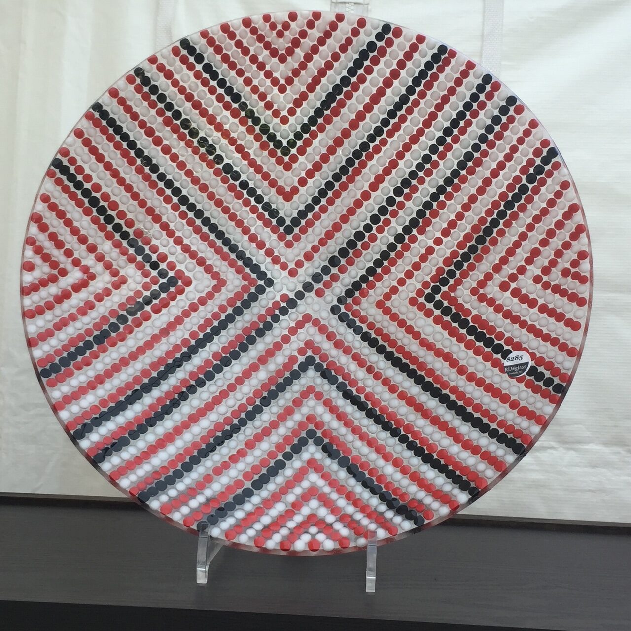 I tend to work large. As my husband and creative partner Bill says, “Go big or go home.” My kiln limits me to a 20-inch round, but within that space, I go deep. Some pieces are over an inch thick and weigh more than fifteen pounds. It’s probably a blessing we don’t own a bigger kiln. The thicker pieces spend hours with Bill at the wet belt sander, giving them that crystal clear, smooth gallery edge.
