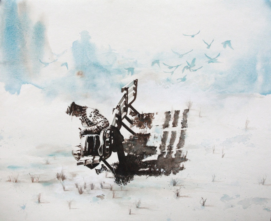 Using human and other animal characters to give context to the unusual spaces they inhabit, I develop contemporary myths for the viewer to interpret that are born out of my perspective and lived experience that become inoculated by the larger sphere of our shared experience. Non-human animals offer symbolism within the story being created. The inclusion of these types of characters is a newer development in my artmaking; a reference to my interest in the natural world that began early in childhood. Each piece’s impetus is the struggle experienced by the main archetype, and the perceived mindscape being traversed within their observed setting.