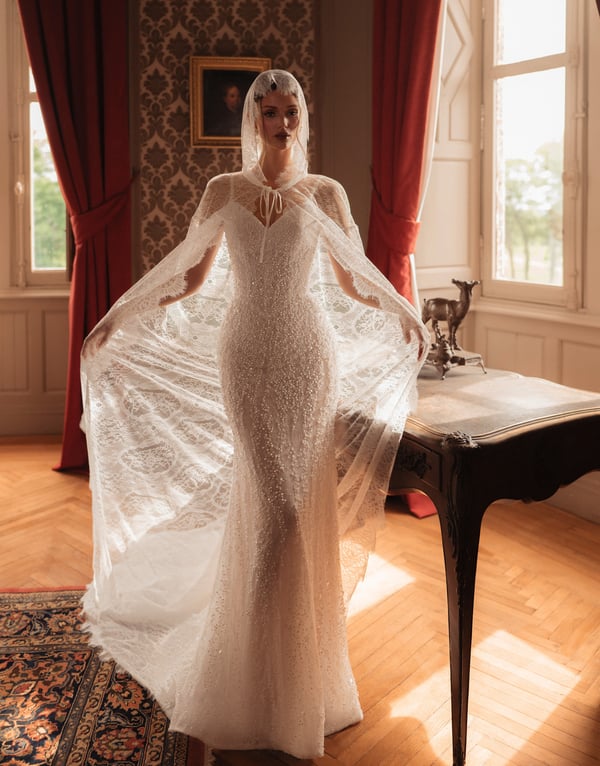 With detachable elements like overskirts, sleeves, capes, boleros, or even bridal pants, a bride can begin the day in full ceremony elegance and transition effortlessly into a lighter, modern look—all within one cohesive couture vision.