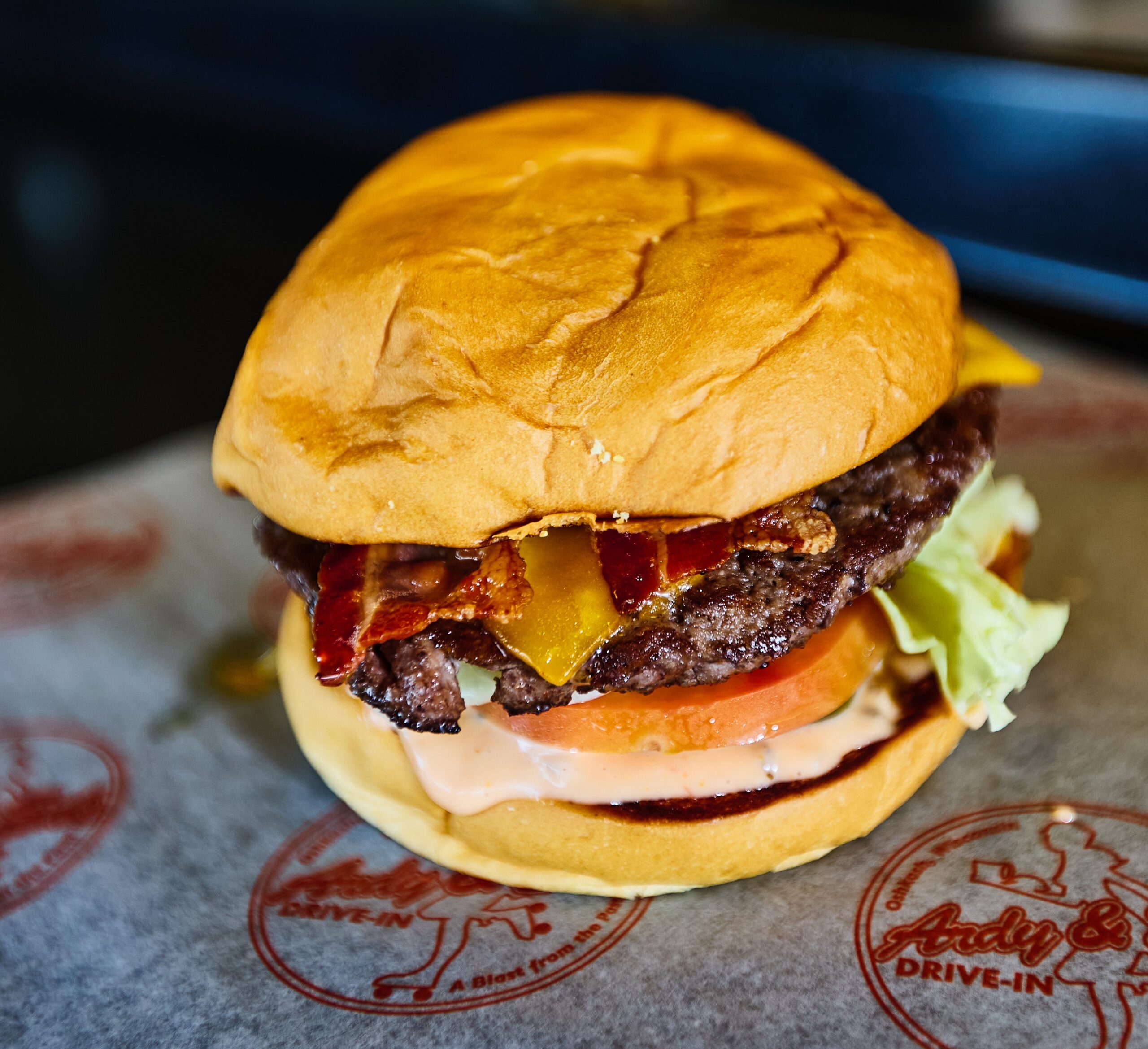 Tall Boy: Our 6‑1 patty topped with special sauce, lettuce, tomato, and American cheese on a toasted Manderfields bun.