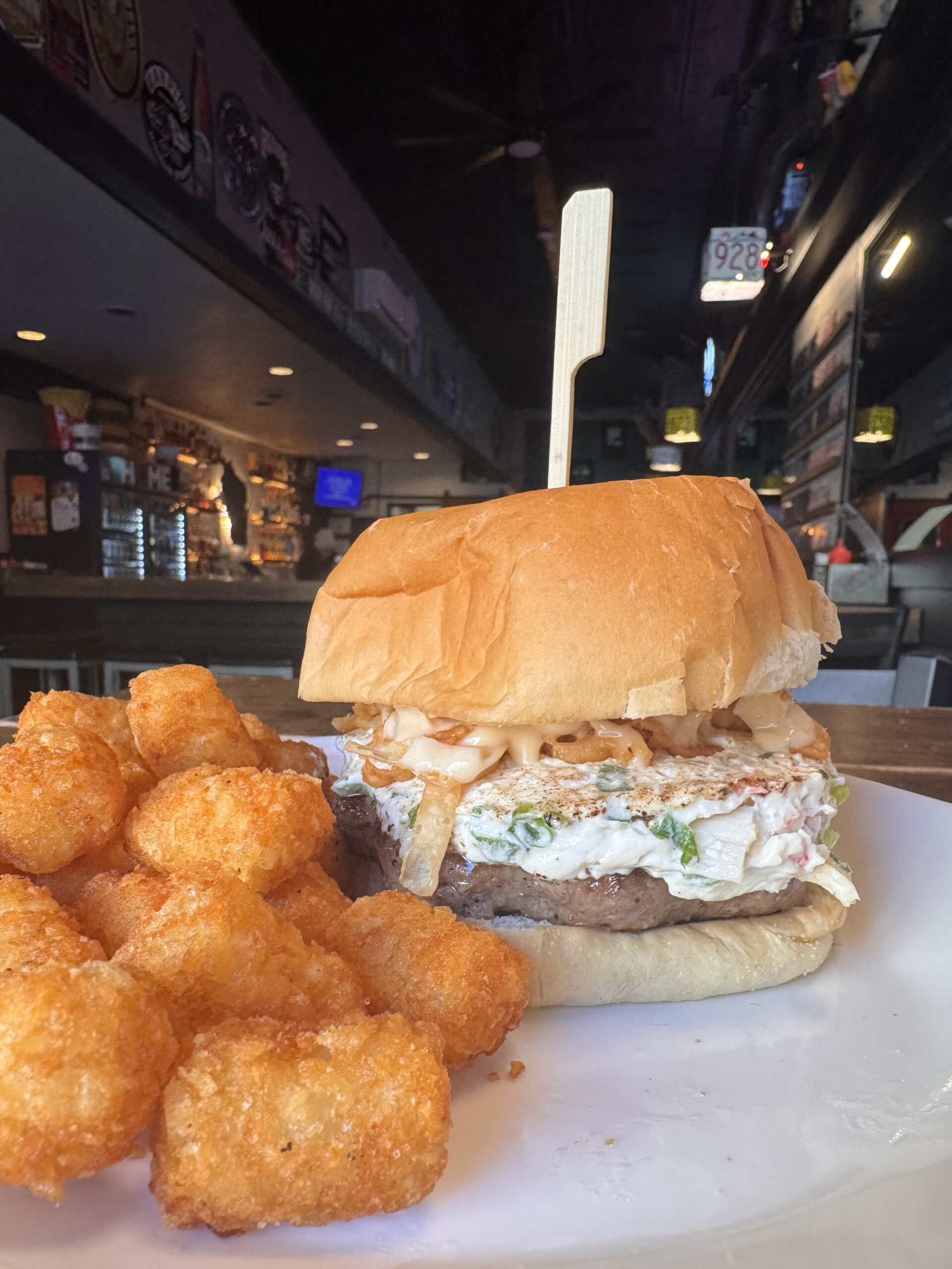 Most unique option: That’s like picking a favorite kid! One of our most popular burgers is our version of a deconstructed crab rangoon. We named it The Crab Goon. We make a crab rangoon dip in-house, topped with wonton strips, green onions, and creamy sweet chili Thai sauce, served on a bun made fresh for us by Simple Simon Bakery. (Also delicious on our crispy chicken!)