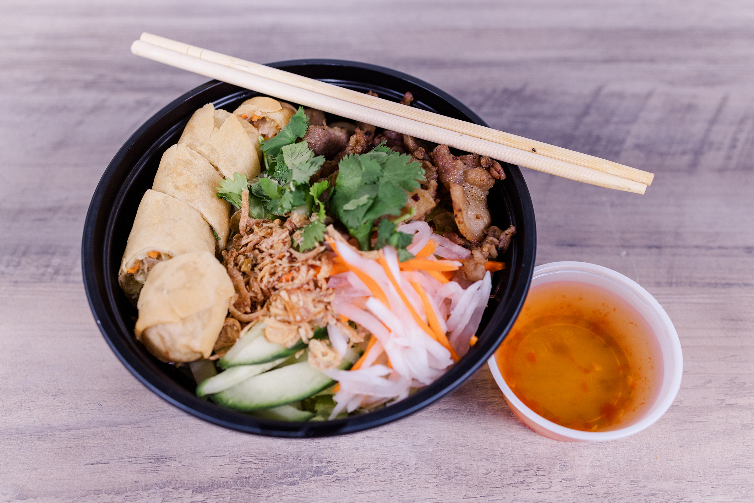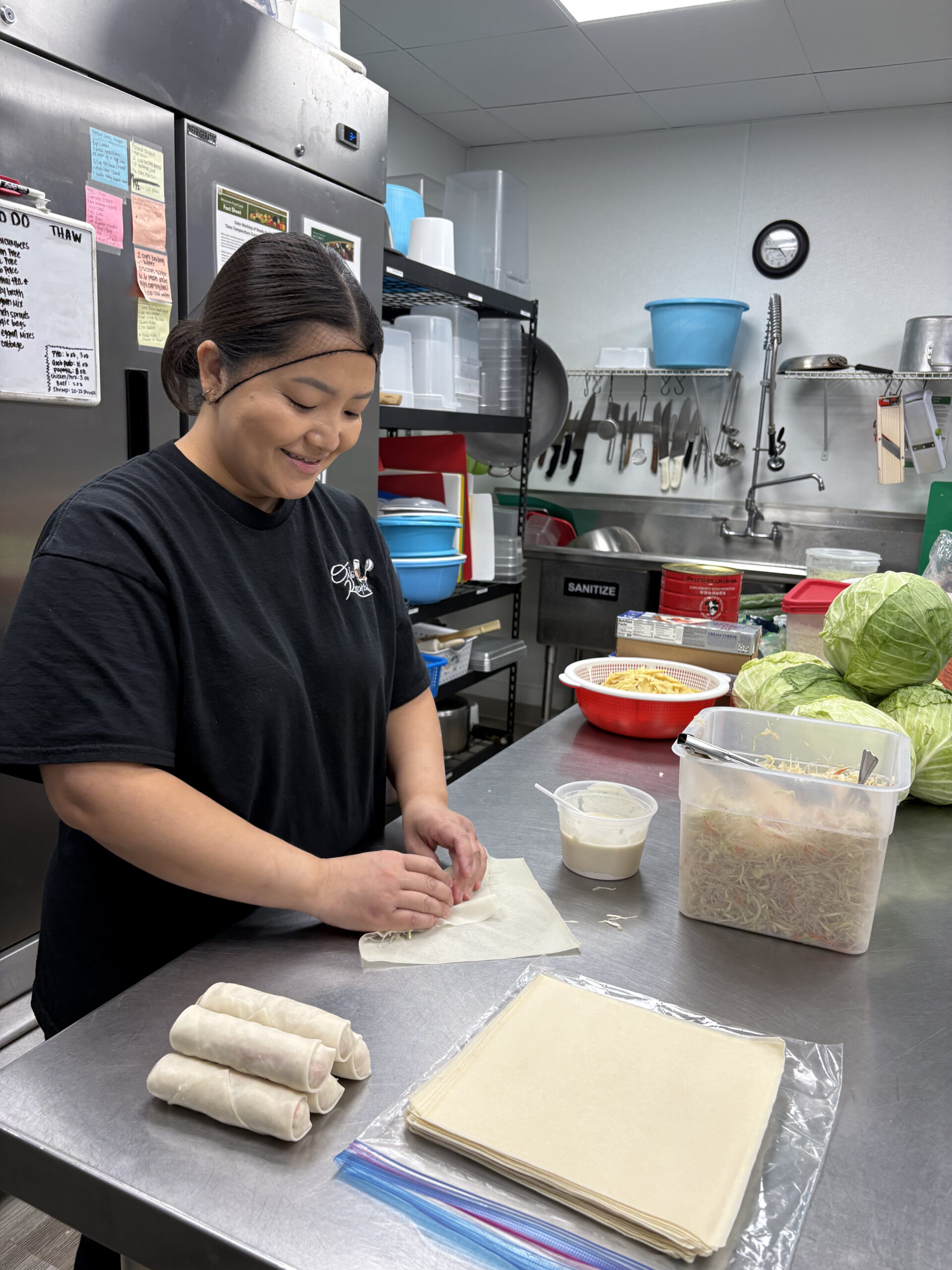 “We prep everything from scratch,” Xiong says. “We buy whole carrots, whole cabbage, onions, everything is fresh. We cut by hand, we don’t have a food processor. We mix a huge batch every morning and we roll and deep fry to order. Same with our Crab Rangoons. They never hit the freezer.”