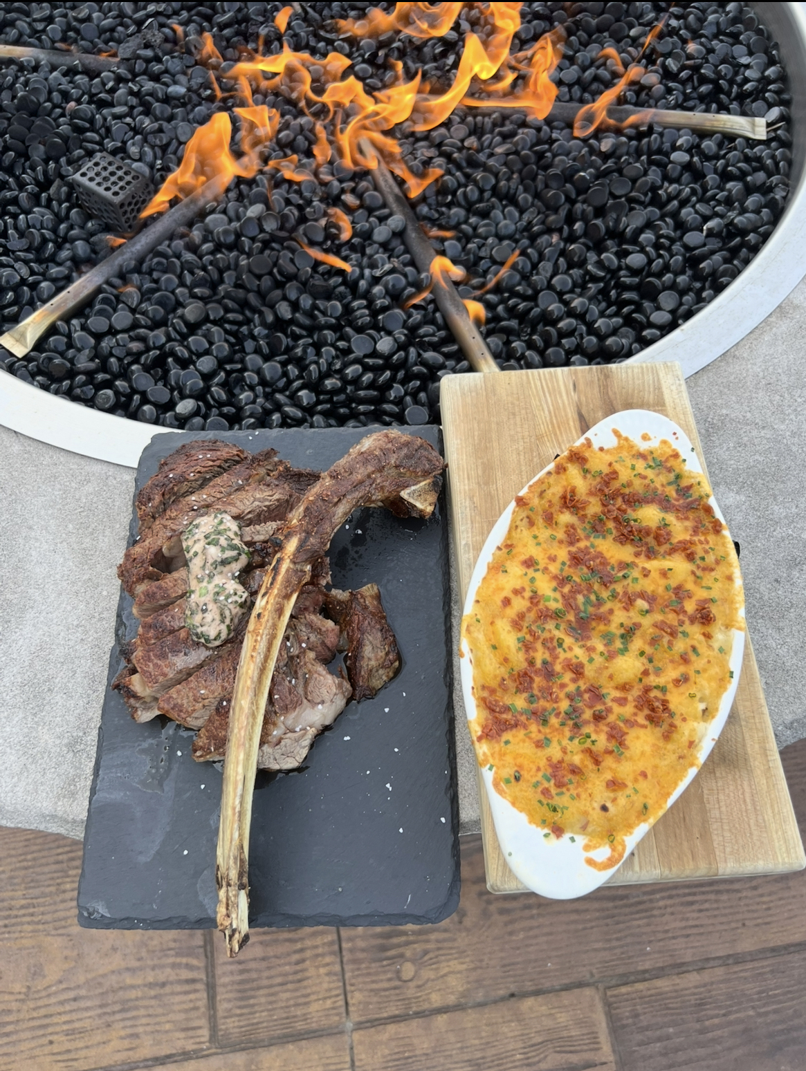 “It’s pretty much the best beef you can buy commercially here,” Covasa says. “Our Dry Age Ribeye is very popular. We do 48 days of dry aging. We also have our A5 Wagyu beef imported from Japan with certificates and everything. We recently added a pasta section to our menu and I add up to four specials so I still have creative freedom with things.”