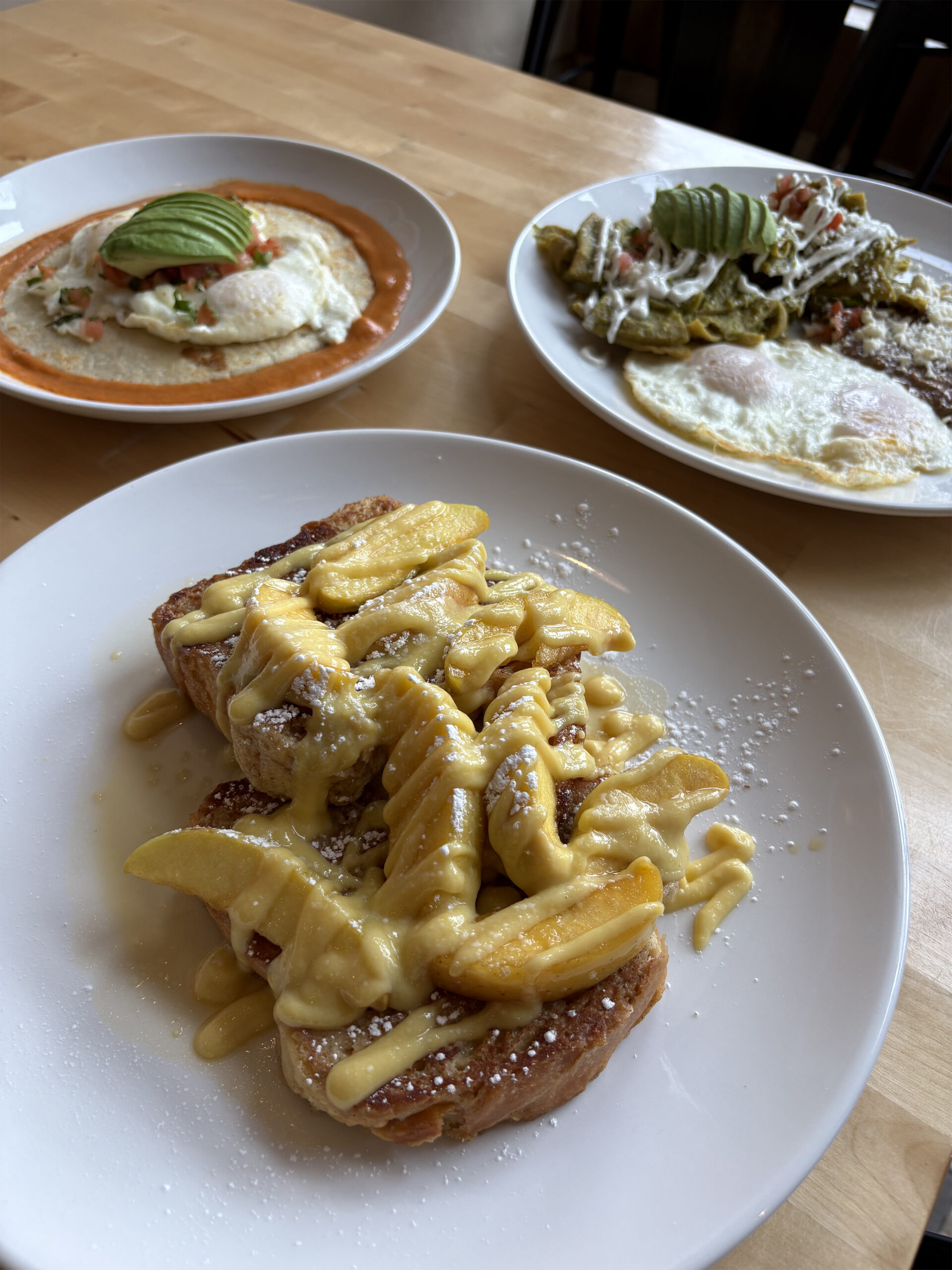Often, diners are enjoying two of the most popular menu items: Chilaquiles and their Brioche French Toast.