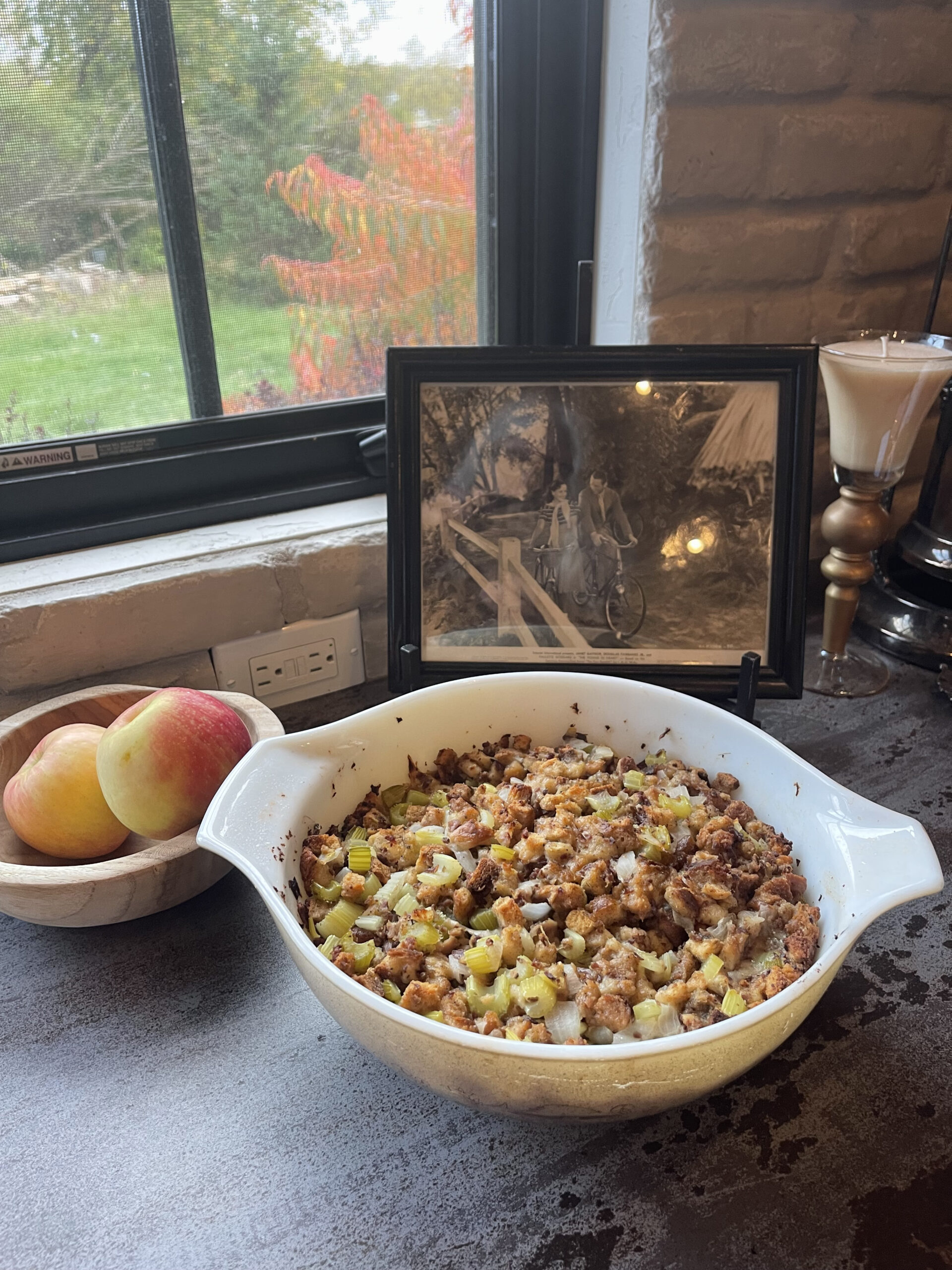 “This dish has been a part of my Thanksgiving for as long as I can remember. My mom’s recipe from her mom that she always made every Thanksgiving. I took over hosting Thanksgiving over 30 years ago, and with that came the passing of the torch in making this stuffing.