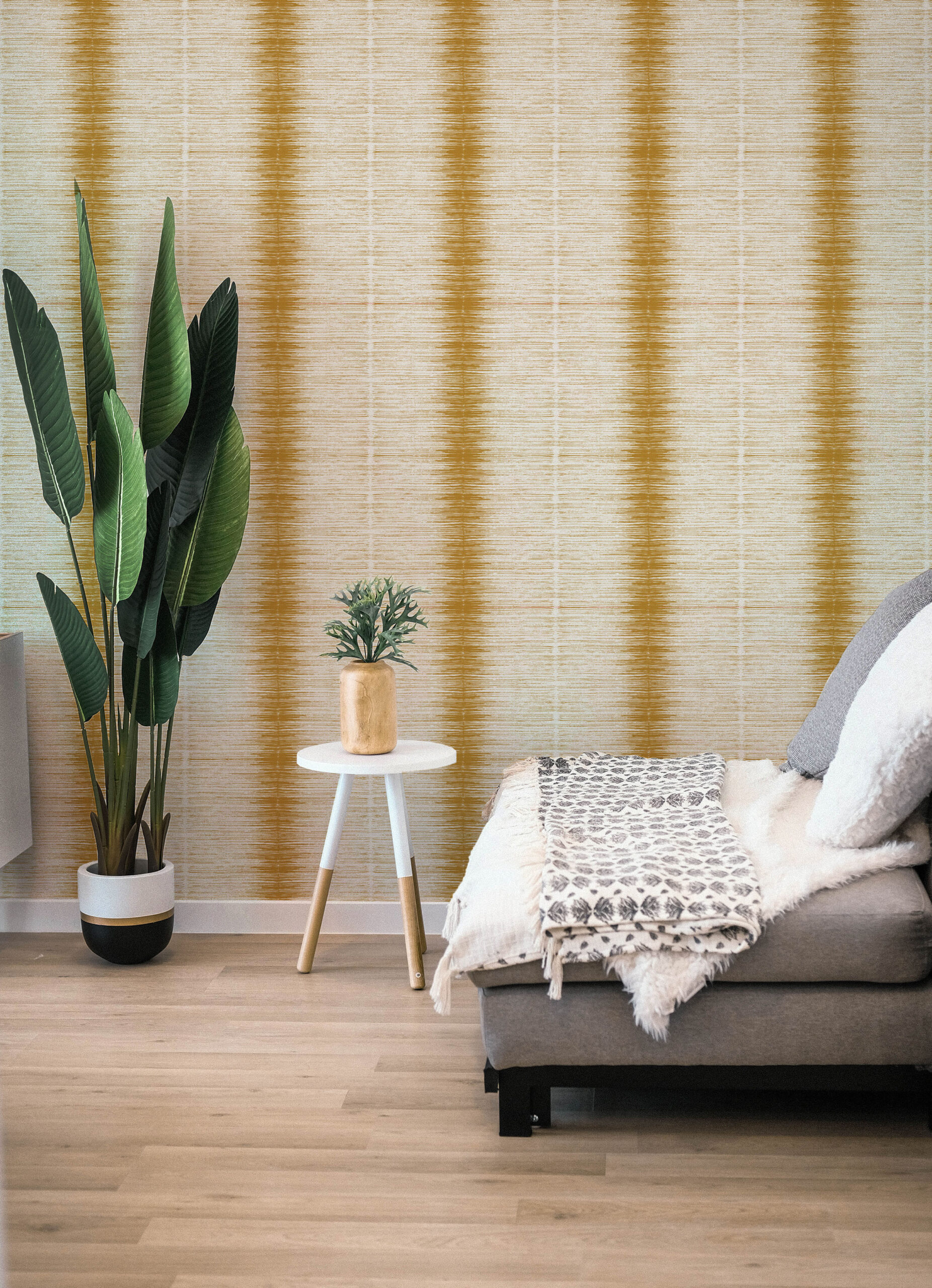 Be sure to choose the best substrate for the function of your space. For example, If it needs to be washable, then consider a vinyl base. If you want to add texture and elegance, consider a grass cloth.