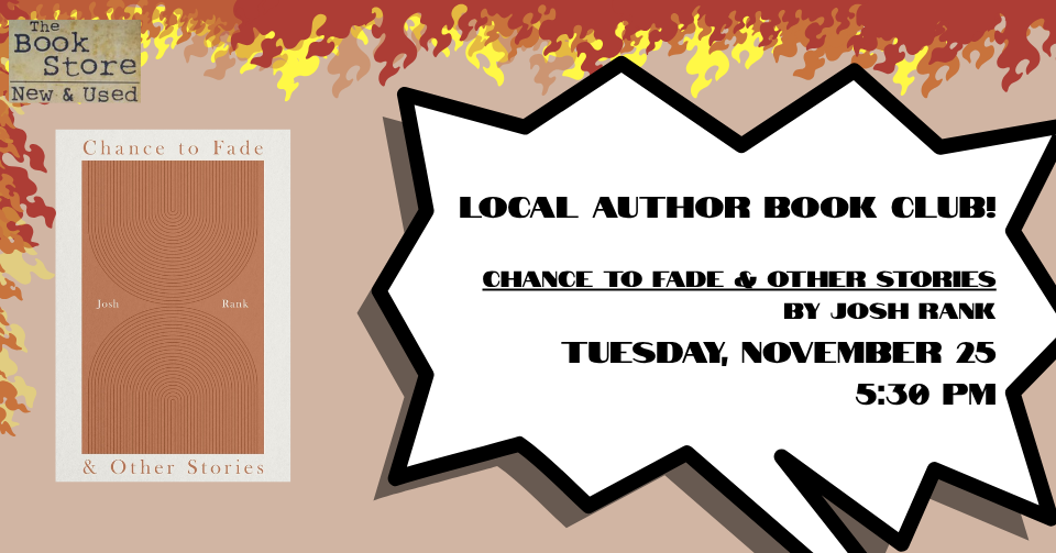 Come join for our Local Author Book Club. Josh Rank will be here to discusses his new book Chance to Fade & Other Stories.