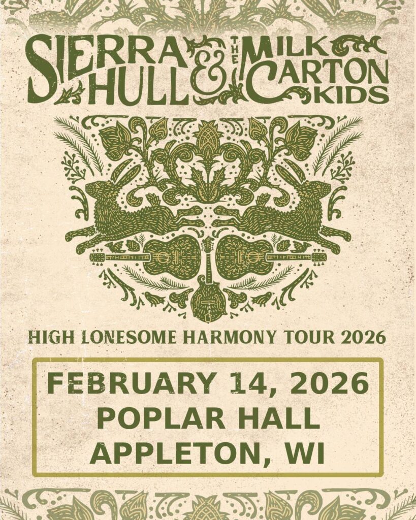Join us at Poplar Hall in Appleton on Saturday, February 14, 2026 for a special Valentine’s Day performance as two of Americana’s most celebrated acts take the stage together. Mandolin virtuoso Sierra Hull, a two-time Grammy nominee and six-time IBMA Mandolin Player of the Year, blends deep bluegrass roots with inventive, contemporary flair, while The Milk Carton Kids, the acclaimed duo of Joey Ryan and Kenneth Pattengale, deliver their signature elegant harmonies and finely tuned instrumentation. Together, they’ll create an intimate, soulful evening of acoustic mastery, heartfelt storytelling, and melodic warmth—perfect for celebrating love, friendship, or simply a night of exceptional live music in a stunning riverside venue.