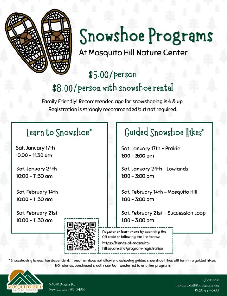 Enjoy a peaceful candlelight hike or snowshoe through Mosquito Hill! Join us when you can and hike at your own pace. Afterwords warm up by the campfire with popcorn and […]